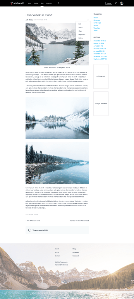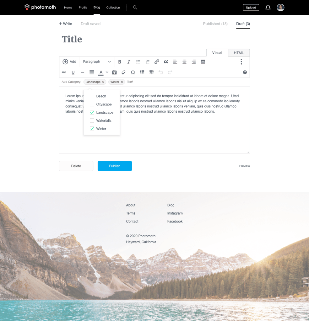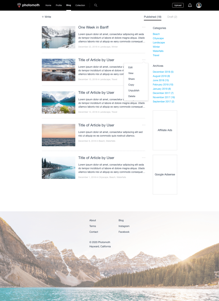 - Photographers: Vetted photographers are able to post photos and blog articles.