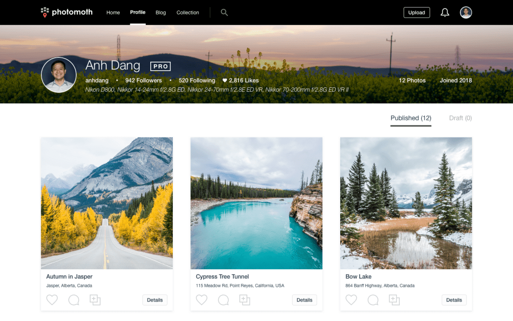 Photomoth is a platform for creators and supporters with great passions for photography and travel. Vetted photographers and travelers share and discover beautiful places around the world. Each photo spot comes with reliable directions, tips, and other relevant information all in one place.