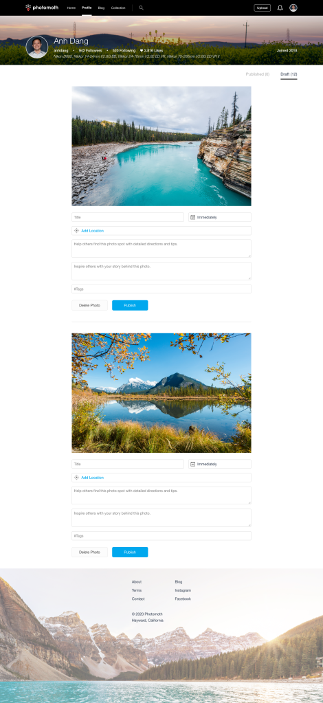 Create a platform with a stronger focus on sharing photo spots with accurate and useful information on locations. Each location comes with high-quality photos, reliable directions and tips from vetted photographers. It will be a one-stop solution for photographers and travelers to share and find inspirations.