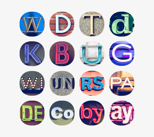 Visual enhancement of generic name initials. Alphabetical letters from sIgnages are visually enhanced and used as generic profile images for Yahoo users who do not have one.